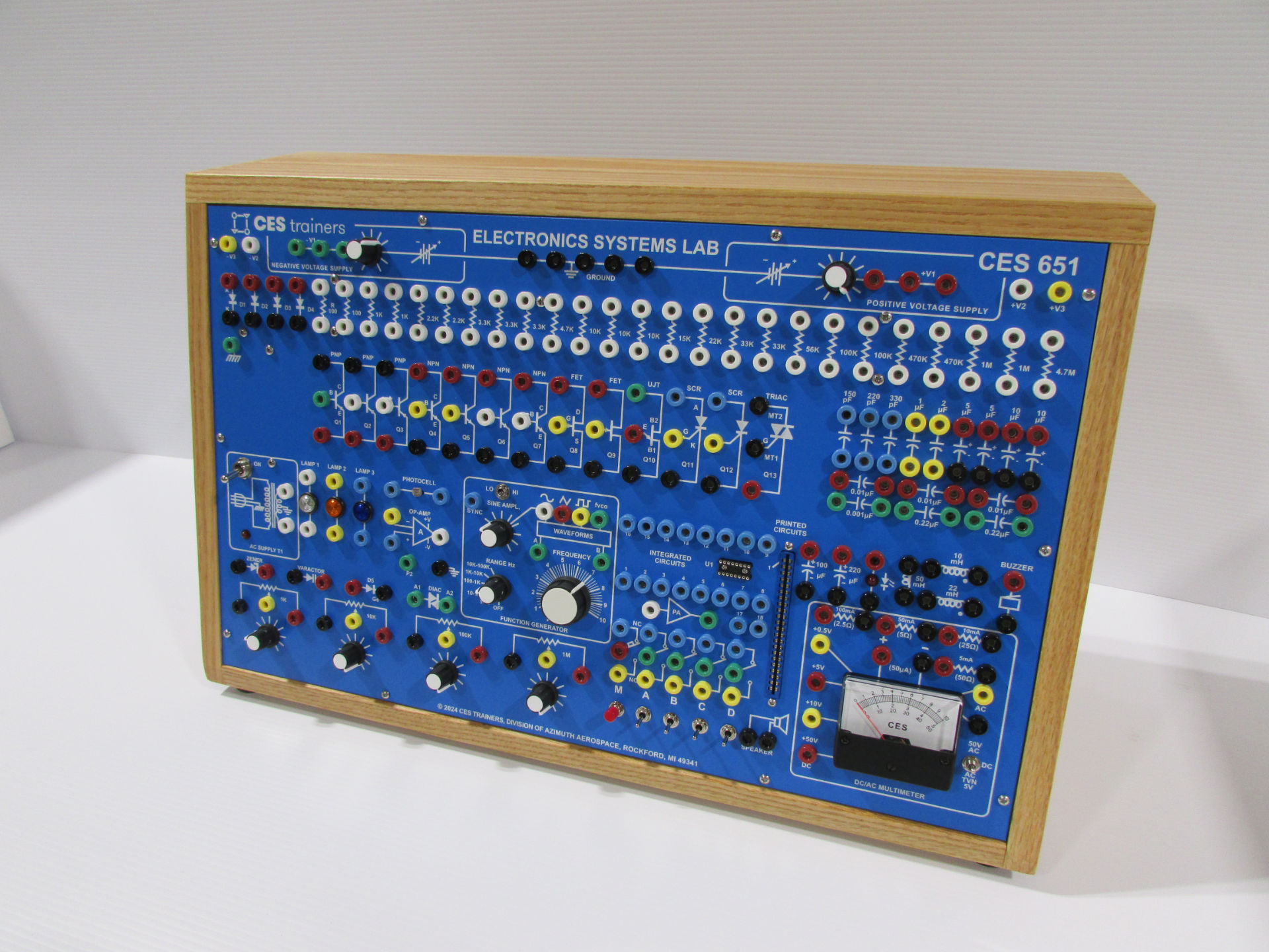 The CES 651 Electronics Lab Trainer is an interactive training tool used in science and electronics classrooms worldwide to introduce students to basic electronics components and apply STEM concepts using hundreds of basic, intermediate, and advanced electronics experiments. The CES 651 is designed to be an intuitive lab trainer allowing students to learn the concepts of electronic components and circuit design.