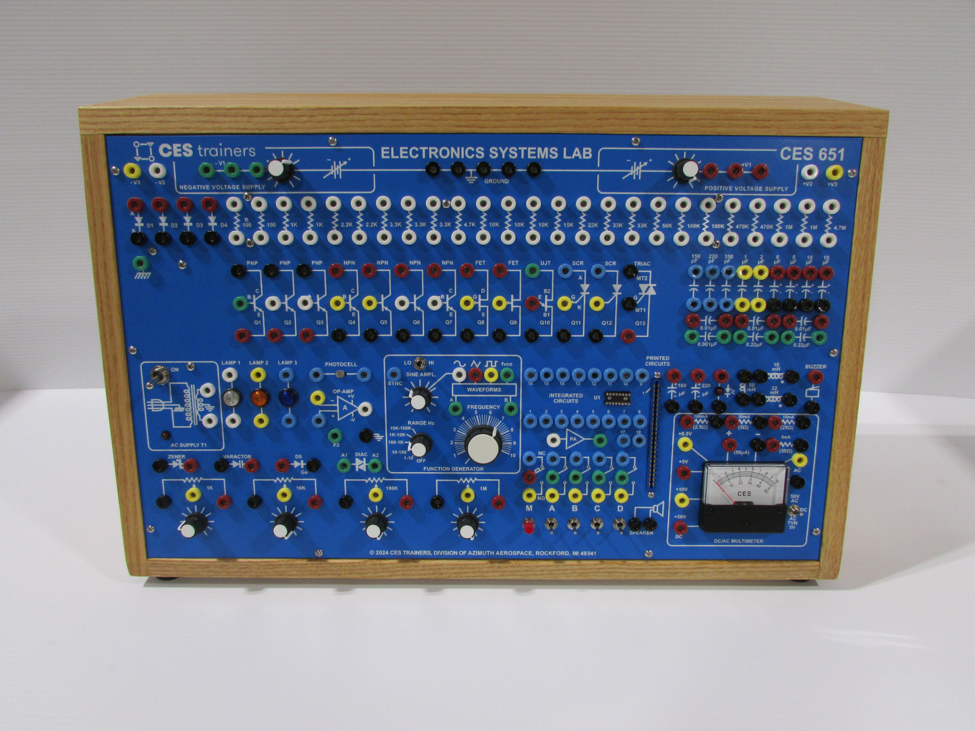 The CES 651 Electronics Lab Trainer is a comprehensive, hands-on learning tool designed to introduce students to fundamental and advanced electronics concepts.